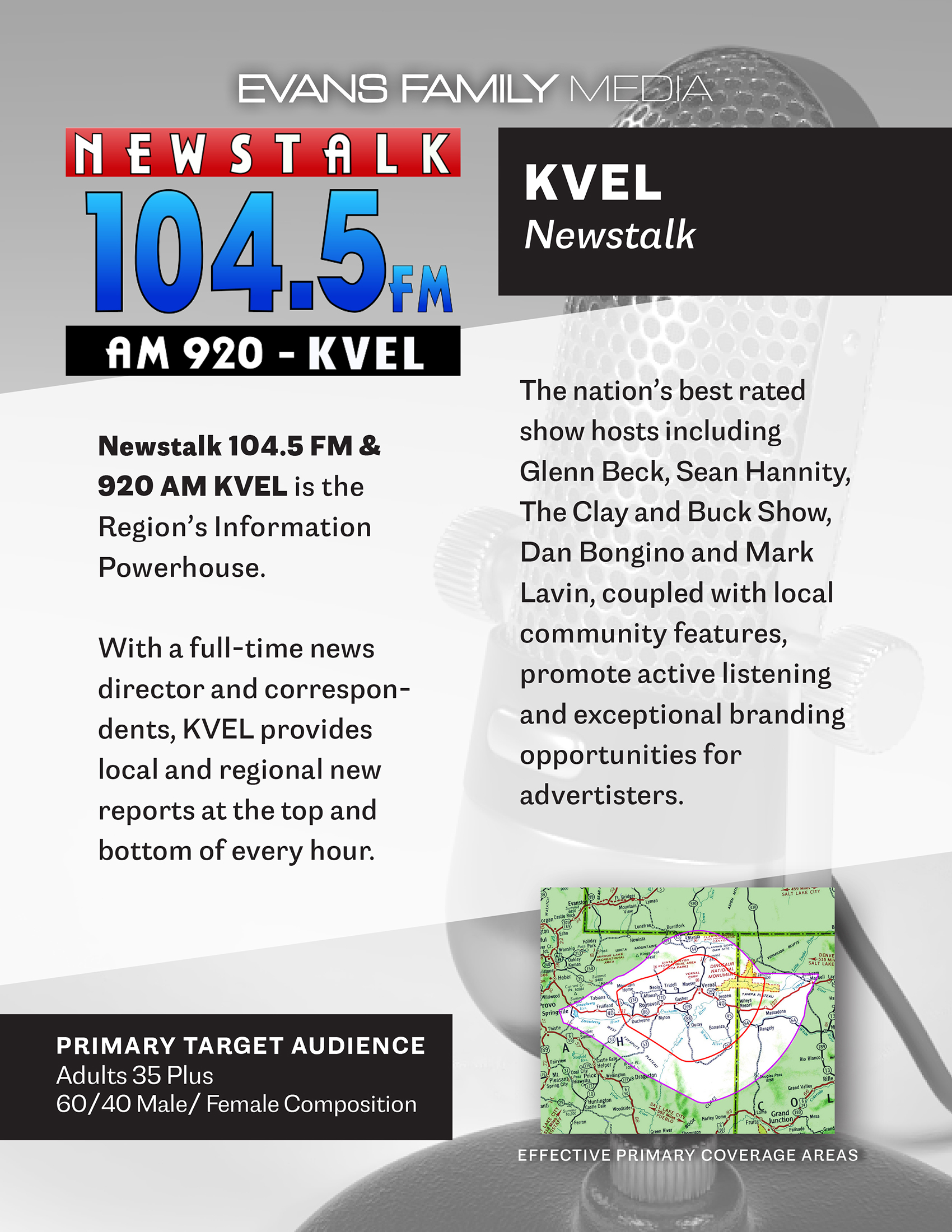 With a full-time local news director and correspondents, newstalk KVEL provides the region’s only daily source of local and regional news.