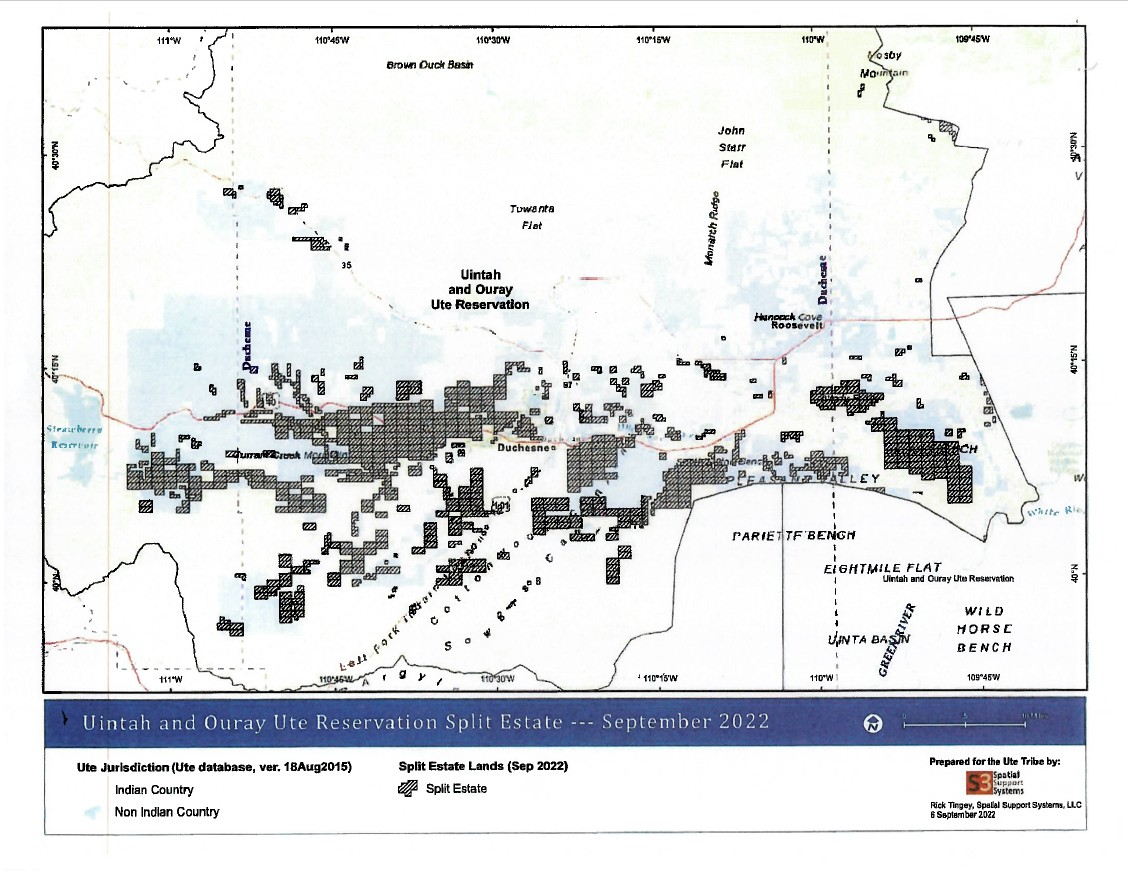 A federal judge has made a determination on a boundary issue regarding the Uintah and Ouray Reservation. 10th Circuit Judge Robert J. Shelby issued a Memorandum Decision and Order in the case of the Ute Indian Tribe versus the State of Utah that asked “whether the surface of split estate lands are Indian Country or non-Indian Country for purposes of determining criminal and civil jurisdiction over matters occurring on the surface of split estate lands.” The judge determined that “the surface of split estate lands is not Indian Country.” The court defined split estate lands as where the Tribe “holds a sub-surface mineral estate interest” and the surface estate of the lands were “unallotted”, “opened to non-Indian settlement under the 1902-1905 legislation and were not thereafter returned to tribal ownership.” The Ute Business Committee has announced that the Tribe will appeal the federal district court’s decision on split-estate lands.