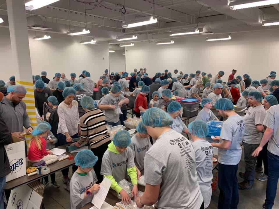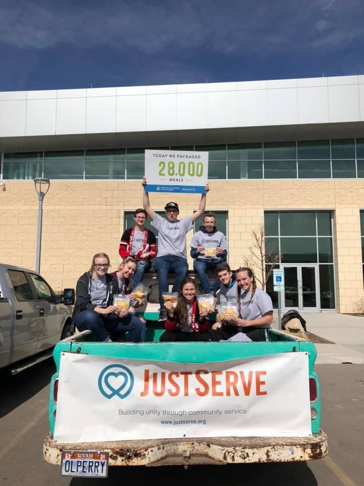 The 1st Annual Hunger Project, an effort to package meals for Uintah Basin community members in need, was a huge success over the weekend at the Uintah Conference Center. The event, organized by JustServe Uintah Basin, packaged over 28,000 meals with the help of a long list of volunteers and by teaming up with ‘Feeding Children Everywhere’, an organization that provides hands on ways to fight hunger. The Uintah High School Student Council, Uintah baseball team, as well as many other community volunteers answered the call to help on Friday and Saturday. “We have had lots of help with Uintah High School students,” shares JustServe local representative and event coordinator Danette Garrard. “Student Marcus Bender made the posters and the Student Council distributed them throughout the school and at a few local businesses.” The students also volunteered at the event, helping and teaching the volunteers how to assemble the meals. The project was made possible through the generosity of local businesses that collectively donated nearly $7,500 dollars. JustServe thanked all who helped with, donated to, and sponsored any aspect of the project, making it a success!