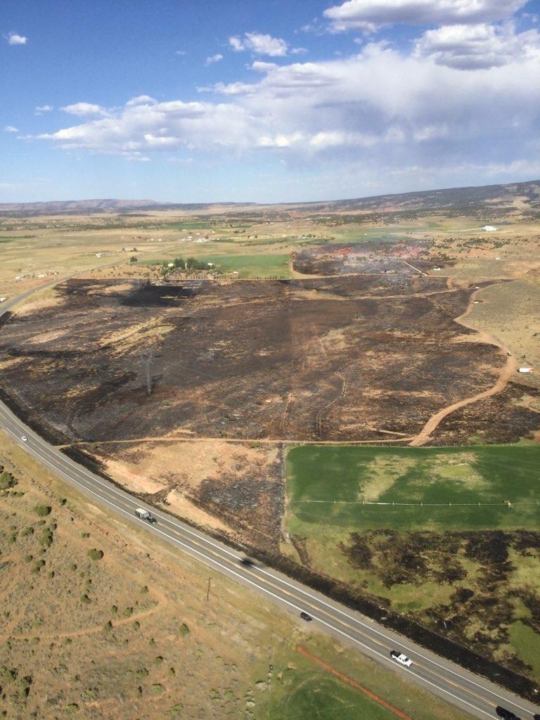 Progress has continued on the ‘6400 Fire’ that started in Fruitland on Friday. According to fire PIO Mike Eriksson, the fire was 75 percent contained as of Monday evening. “This was a human caused fire that is under investigation,” shares Eriksson. “Winds quickly pushed this fire to the east after multiple starts along a short section of Highway 40 in Fruitland Utah. Due to the quick response of the Fruitland fire department, engines and water tenders were on scene within minutes. Unfortunately high winds pushed the fire into a home that firefighters were not able to save. One home was lost and another damaged. Additionally 2 sheds, a trailer and one other small outbuilding were lost in the fire. Engines and Dozers were able to stop the forward progress of the fire around 5:00 pm and started to secure the lines and work hot spots. At 6:00 pm evacuations for the 6 homes were lifted and residents were allowed to return to their homes…A helicopter flight in the evening put the acreage at 225.