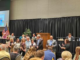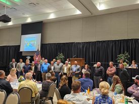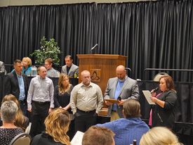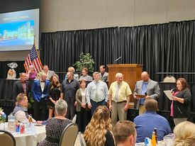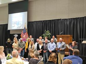 The 74th Annual Meeting and Awards Dinner for the Vernal Area Chamber of Commerce was held last week. The gathering enjoyed a unique guest speaker who happens to be a local. As the only state registered gun lobbyist in Utah, Clark Aposhian spoke on the 2nd Amendment and the importance of protecting rights. His message was followed by the announcing of awards by our very own Matt Wilber and Chaunte Riker of Evans Family Media. The Business of the Year in Agriculture is Ashley Valley Veterinary Clinic, in Government is Vernal City, in Manufacturing/Industry is American Gilsonite Company, in Retail/Wholesale is Wheeler Machinery Company, in Service is Strata Networks, and in Environmental is Marathon Petroleum Corporation. Outgoing Chamber President Jared Jackson was named the Total Citizen of the Year and Todd Massey was elected as the new Vernal Area Chamber of Commerce President.