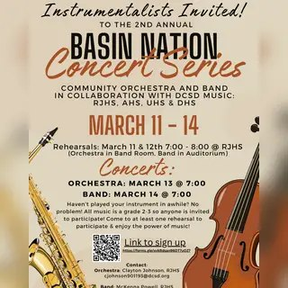 A fantastic collaboration between music programs in the Duchesne County School District and Uintah Basin musicians is almost here. The event includes music programs from Roosevelt Junior High School, and Altamont, Union, and Duchesne High Schools. “The Duchesne County School District secondary music team is so excited about this opportunity we have planned for musicians in the Duchesne County area!” shares the announcement. “We are happy to announce that the Basin Nation Concert Series is back again.” This is the 2nd year for the event and community orchestra and band instrumentalists are invited to come perform with the younger generation of musicians in Duchesne County. Rehearsals are March 11th and 12th at 7pm at the Roosevelt Junior High School and the concerts are March 13th for the orchestra and March 14th for the band.