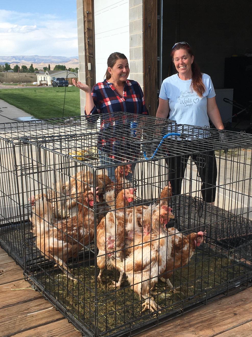 Different causes prick at different hearts and for Amy Dotter of Vernal, and supporters that joined her along the way, hearing about the starving hens needing rehomed in West Valley City was a cause they couldn’t ignore. Amy did some research and while she wanted to help she didn’t feel comfortable getting hens directly from the egg farm. She did, however, find a rescuer out of Eagle Mountain named Tier Broberg who had been purchasing hundreds of the hens at a time and taking them back to her farm to care for them until people could adopt them. When Amy saw that Broberg had a veterinarian declare the chickens disease free she decided to get involved. First she posted on social media to see how many of her friends would be interested in the chickens if she were to go pick them up. “I got a HUGE response,” shares Amy. “So me and my chicken saving friend Brianna Hadlock drove out one Saturday with as many dog crates as we could fit in the back of my small pickup. We spent the afternoon chasing chickens around a horse pen with a fishing net and managed to fit 40. My friends, and Brianna and I, were so happy with these poor little featherless sweethearts that everyone started telling their friends.” Word spread and other Uintah Basin friends were asking when Amy was going to get some more. Turns out A LOT of folks in the Uintah Basin felt just like she did and wanted to help these starving hens. A second trip was planned and they came home with over 300 hens and within 2 days they were all rehomed. Amy has been overwhelmed and touched by the response, especially from the kids that have talked their parents into getting hens. One boy in particular melted her heart when he asked how he could make sure the hens never feel unloved or unwanted again. Amy was also especially grateful to those who helped her including Tier Broberg, Kade Tyler, Brianna Hadlock, and Jack Dotter. Amy says her father Jack was unsure at first but by the 2nd trip was on board and offered to drive them and use his fancy stock trailer. Talk has continued of a possible third trip but in the meantime, the members of the ‘Uintah Basin Chicken Rescue’ are supporting each other on Facebook as they work to restore their hens back to health.
