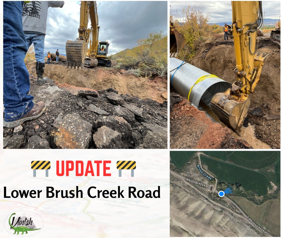 Repairs to Brush Creek Road are well underway. Uintah County announced early this week that the heavy rains and flow through the culvert had washed out the road at approximately 9115 Brush Creek Road. The Uintah County Road Department got to work and on Wednesday, Uintah County Commissioner Willis LeFevre shared photos of the replacement culvert brought in and put in place. The announcement of when the road will be reopened had not been made as of early Thursday morning. Commissioner LeFevre thanked Scott Hardman and the Uintah County Road Department for their work this week. For more information, call 435-789-1070.