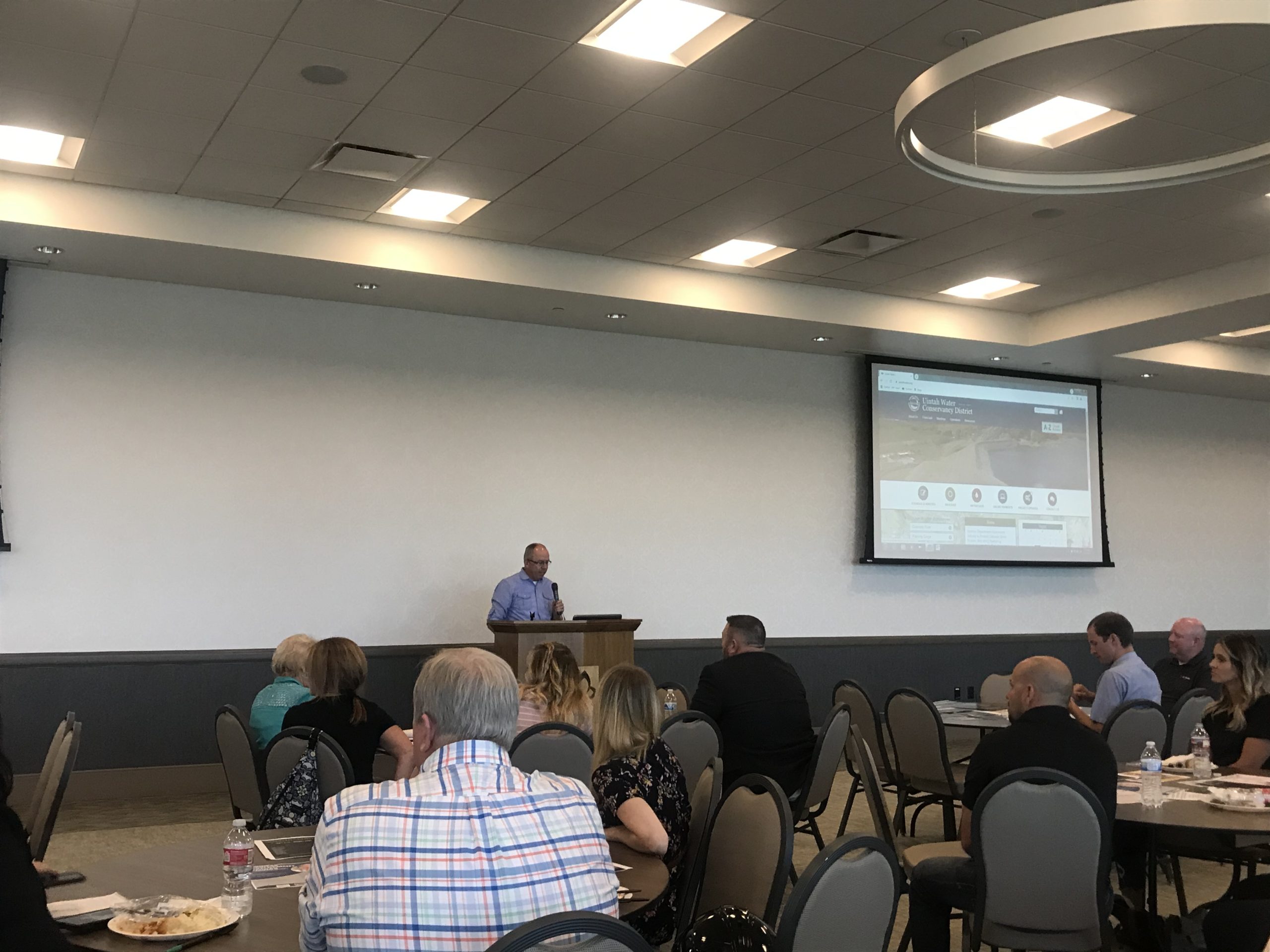 William Merkley, General Manager of the Uintah Water Conservancy District, presented the results of the 2 year Colorado River Basin study during Tuesday’s Vernal Chamber luncheon. The study projects that Lake Powell will release 7 million acre-feet of water during 2023. For the Lower Basin States and Mexico, the study determined that Arizona will take a 21 percent cut to their annual portion of water, Mexico will take a 7 percent cut, and Nevada will take an 8 percent cut while California is not required to cut back. When asked why California is exempt, Merkley explained that they are politically savvy and that apparently makes the difference. The Upper Basin, of which the Uintah Basin is a part, is asked to focus on water conservation efforts, especially as the upper division just divides what water is left over after the Lower Basin receives their portions. Merkley mentioned that local water conservation efforts are greatly appreciated and gave the example of Jensen investing a tremendous amount of money repairing leaks and reducing losses in their system.