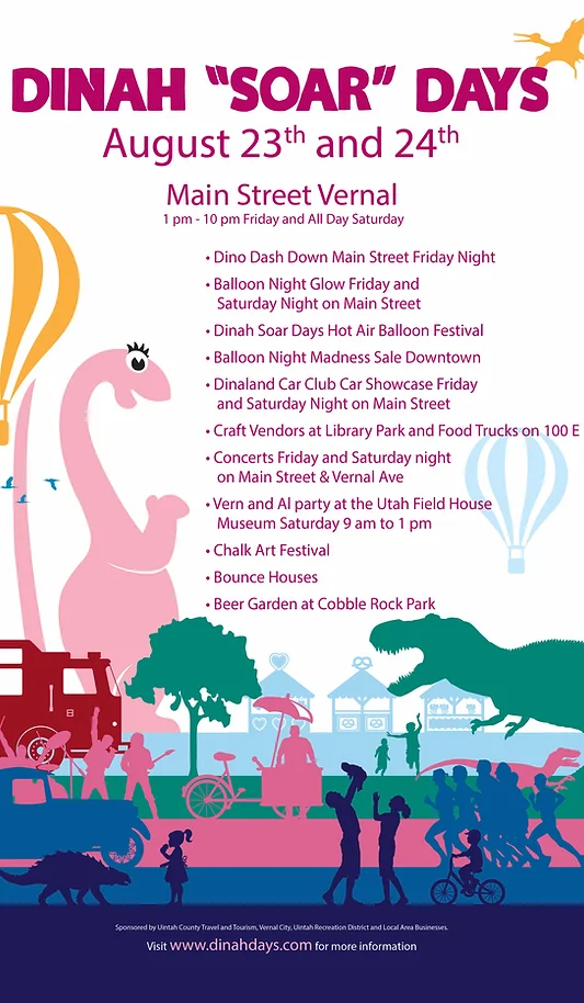 It’s time again for a favorite local event that also draws visitors from throughout the region and beyond. Dinah “SOAR” Days Hot Air Balloon Festival is happening August 23rd through the 25th and if you’ve been watching the sky you may have even enjoyed a preview of what is to come. Baby T-Rex and his colorful balloon pals took flight on Sunday in preparation for this weekend’s festivities. The Balloon Night Glow is planned for Friday and Saturday night on Main Street. The Dino Dash is down Main Street on Friday night. Dinaland Car Club Car Showcase happens Friday and Saturday night on Main Street. There will also be concerts on Friday and Saturday night on Main Street and Vernal Avenue. To get a full list of events, visit www.DinahDays.com.