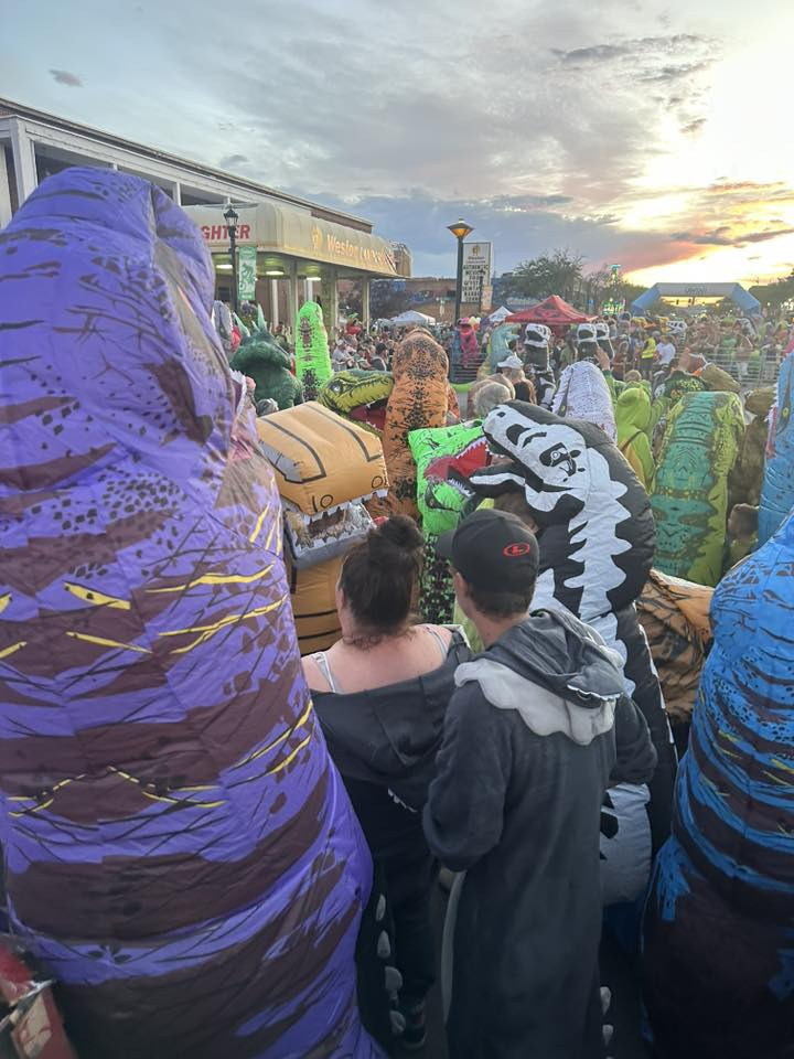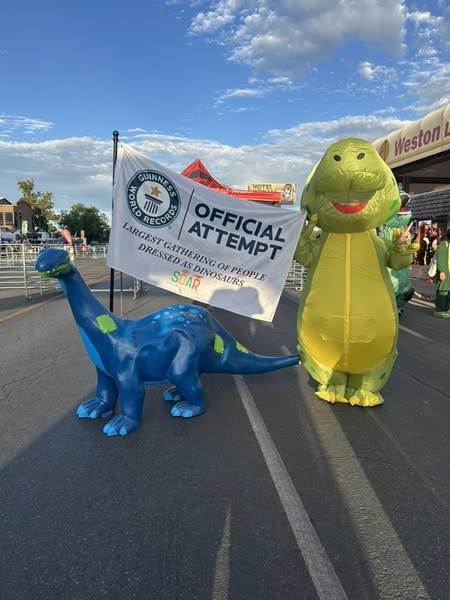 Well over a thousand dinosaurs roamed downtown Vernal on Friday as part of the annual Dinah SOAR Days celebration and an official attempt to break the world record for ‘Largest Gathering of People Dressed as Dinosaurs’. While an official announcement has yet to be made, the holding pin utilized for the record count definitely held more than the previous record of 468 held by Palm Beach, Florida. Locals involved in planning the event shared that Friday’s count reached 800 dinosaurs in the holding pin but the official announcement from the Guinness World Record judges is pending. The dinosaur costumes on Friday certainly demonstrated the feeling of community pride in Vernal as Dinosaurland and that feeling carried through the weekend event. The air balloon festival welcomed 42 pilots from 7 states and the weather cooperated for air balloons to fly all 3 mornings. Lesha Coltharp, Director of Tourism for Uintah County, reported that this was the biggest year yet for Dinah SOAR Days attendance. “It takes a community to pull off an event this size,” shares Coltharp. “Vernal should be proud. The pilots always tell me this event is top 3 for them and the organization of the event and the community make it that.”