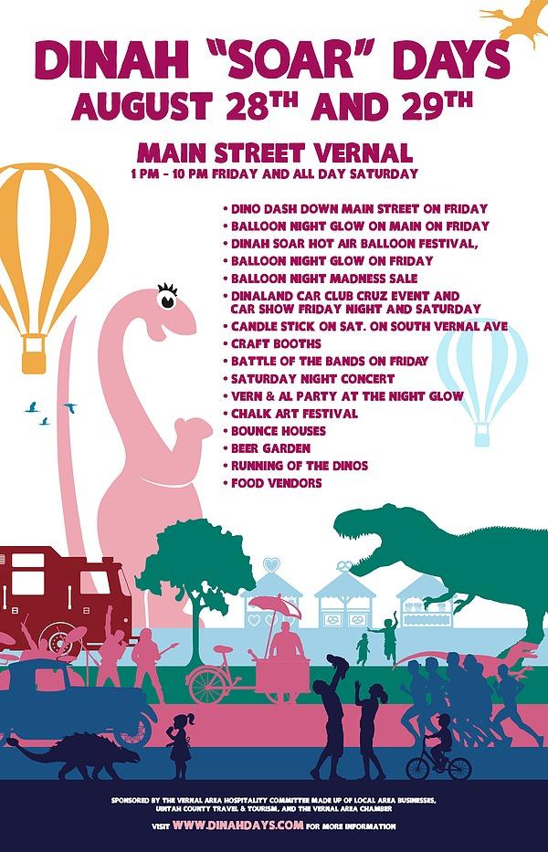 Keep your eyes to the sky this weekend in the Vernal area to enjoy a magical sight. Friday, Saturday, and Sunday is Dinah “SOAR” Days with 24 hot air balloons scheduled to participate and launch each morning around 6:00am from the Uintah Rec Center property. While there will be no tethered rides this year due to COVID-19 it will still be worth the time to attend. The Night Glow will be held Friday night along with a car show, running of the dinosaurs, battle of the bands, and of course Main Street will be lit up with over 10 enormous hot air balloons. Meeting the pilots is a favorite opportunity for festival visitors each year. The fun continues Saturday evening as well with the air balloon pilots putting on a fun show using the air balloons fire synced to music. Uintah County Travel and Tourism Director Lesha Coltharp urges all to get out and experience this MAGICAL event. There will be hand sanitizer and hand washing stations and plenty of space to stay back and still take in the breathtaking beauty of the Dinah “SOAR” Days hot air balloons visiting Vernal this weekend. Visit the Dinah “SOAR” Days & Hot Air Balloon Festival Facebook page or www.DinahDays.com for the schedule of events.