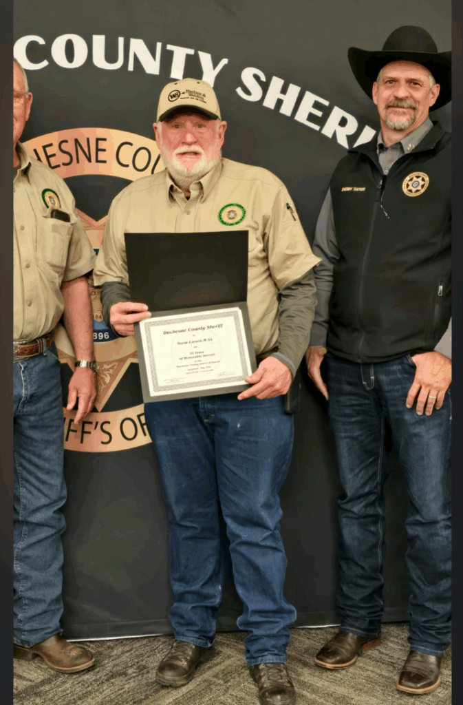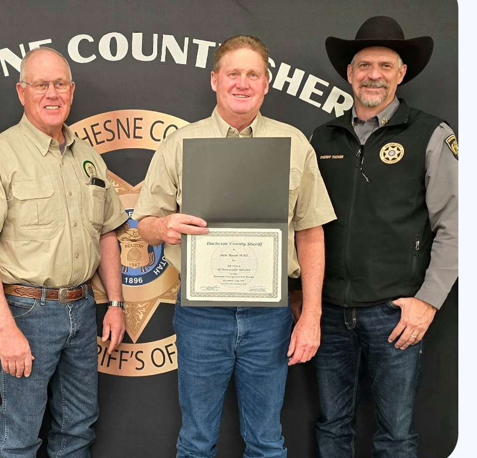 The amazing volunteers of Duchesne County Search and Rescue were honored last week at their annual banquet. “In 2025, these dedicated volunteers completed over 400 search hours and logged an impressive 272 hours of training, continually sharpening their skills so they are ready whenever the call comes,” shares the Duchesne County Sheriff’s Office. “…These individuals are all volunteers who respond at a moment’s notice to search for missing or lost individuals. They are our family members, friends, neighbors, and coworkers — truly the community’s best of the best.” Several search and rescue members were recognized, including Ken Moon for 40 years of service and Norm Larsen for 35 years of service.