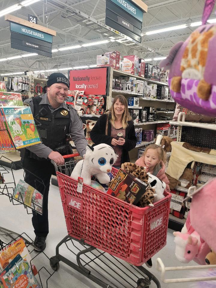 Smiles are contagious at each year’s Shop With A Cop events and this year was no exception. Shop With A Cop was held on Saturday in Roosevelt at Stewart’s Market/Ace Hardware. “This is one of our favorite days of the year where we are grateful for the opportunity to participate in the Shop with a Cop event organized by the Roosevelt Police Department,” shares Duchesne County Sheriff’s Office. “This program has proven to be a positive event and is well received in communities throughout the state giving smiles to children that may not have the opportunities to enjoy the holidays without it.” Shop With A Cop first came to Utah in 1990 as a program through K-Mart. In 2003, K-Mart discontinued the event after corporate reorganization and the Salt Lake Police Department took the steps to see it continue. The goodwill fostered between kids and officers inspired agencies throughout Utah to participate and hold their own Shop With A Cop events. The Duchesne County event included officers from the Sheriff’s Office, Roosevelt PD, EMTs, UBMC Ambulance crew and nurses, Ute Tribal Ambulance Crew, Utah Highway Patrol and Duchesne County Victims Advocates.