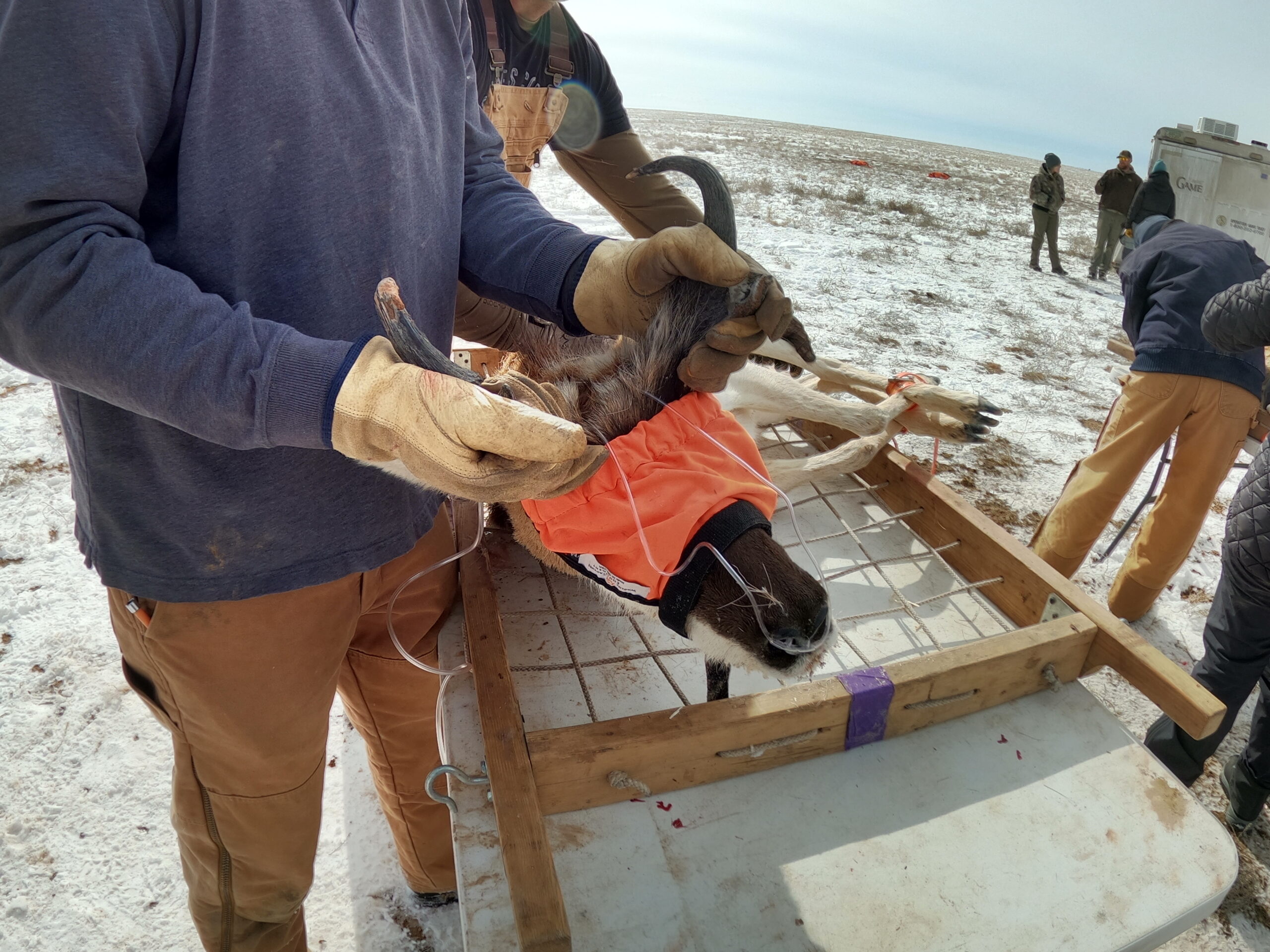 Every year, the DWR captures and collars big game animals to learn more about migration patterns and survival rates. This winter, a record 1,779 big game animals were captured across the state, including in northeastern Utah. The captures typically take place between November and March, when the animals have migrated to lower elevations and are easier to locate. “When we do capture work, we make a concerted effort to minimize chase times and to keep all capture-related stress to a minimum,” shares DWR Big Game Projects Coordinator Kent Hersey. “It’s a short one-time event for those animals and doesn’t have the same impacts as repeated disturbances that cause them to use up important fat reserves. The information our biologists get from capturing a relatively small sample of deer provides very valuable data that is used to manage the entire deer population.” During the 2023-24 winter, the following animals were captured, assessed and released: 209 Bighorn sheep, 27 Bison, 1,153 Deer, 305 Elk, 18 Moose, and 67 Pronghorn. During this year’s captures, deer across the state were in good nutritional condition. Of the 19 hunting units where deer were captured in December, eight of the units had deer with record high body fat levels.