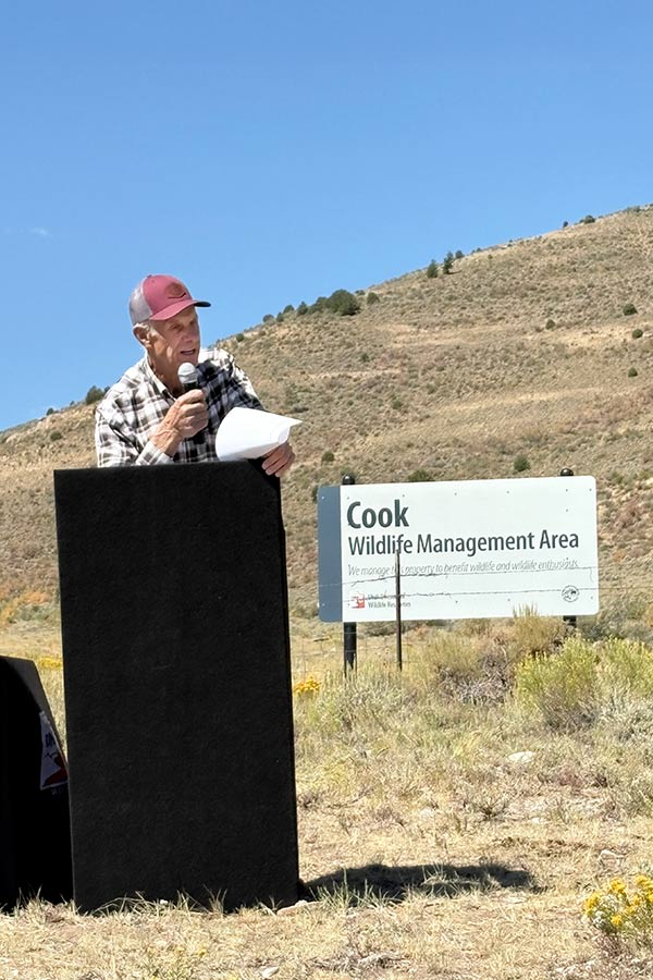 A special ribbon cutting event was held on Wednesday for the Cook Wildlife Management Area in Daggett County. The Cook Wildlife Management Area is the newest WMA in the state and was purchased from and named after private landowners Dall and Ellen Cook. The DWR partnered with several organizations to purchase the land, including the U.S. Fish and Wildlife Service, the Mule Deer Foundation, Sportsmen for Fish and Wildlife, Rocky Mountain Elk Foundation and the Utah Wild Sheep Foundation. “We are extremely grateful to the Cook family and also to our many funding partners who are passionate about wildlife conservation,” shares DWR Director Riley Peck. “Wildlife management areas are crucial in protecting important habitat for our many wildlife species in Utah and for helping to provide a place for Utahns to hunt and fish.” The DWR announcement shares that the Cook WMA provides important summer range for deer, elk and pronghorn and also provides habitat for Rocky Mountain bighorn sheep, moose, upland game and black bears in the area. The land sale was finalized in January, and the WMA is now open to the public. The WMA is walk-in access only — no vehicles are allowed.
