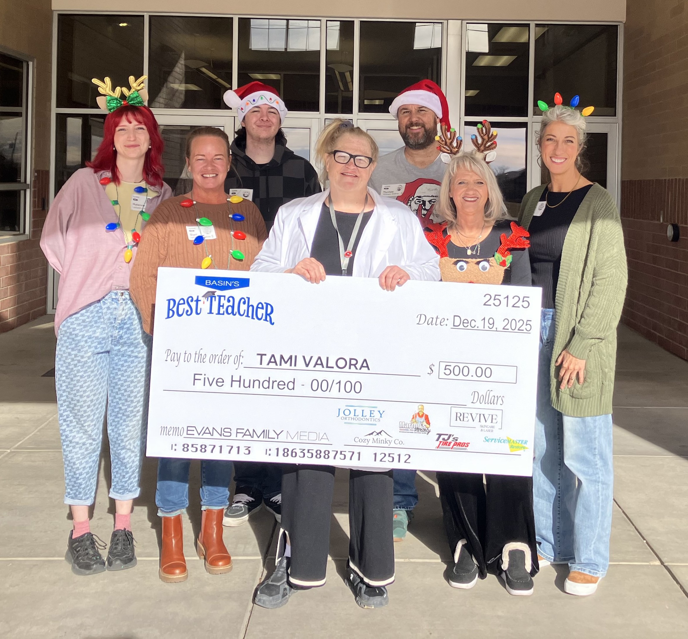 A final Basin’s Best Teacher was surprised last week by the Evans Family Media team. Tami Valora is a 5th grade teacher at Maeser Elementary who was selected for her dedication, positive classroom impact, and commitment to student success. A classroom celebration was held on Friday, December 19th, honoring her and her students. In addition to the cash prize, school supplies were donated to Maeser Elementary School as part of the award. The Basin’s Best Teacher promotion, which celebrated outstanding educators across the Uintah Basin, has now officially concluded. The promotion emphasized the importance of recognizing and supporting local educators. The cash prize awarded to the winning teacher was generously donated by the program sponsors. Sponsors recognized for their support include Cozy Minky Company, Revive Skin Care and Laser, Jolley Orthodontics, Marion’s Variety, ServiceMaster Restore, and TJ’s Tire Pros in Vernal and Roosevelt. Evans Family Media extends congratulations to ‘Basin’s Best Teacher’ Tami Valora and thanks the community for nominating their favorite teachers.