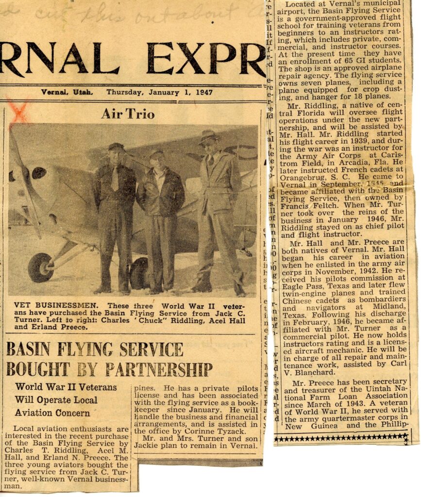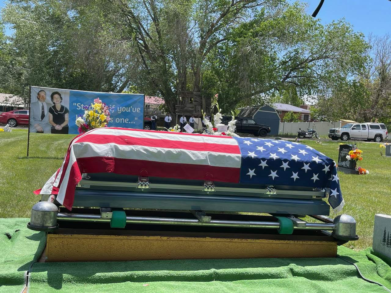 Military honors and graveside services were provided this month for a 101-year-old WWII veteran who is believed to be the last WWII veteran that will be buried in the Vernal area. Acel Mark Hall was born in 1922 in Vernal to Mark Moroni Hall and Mary Fontella Stringham. He graduated from Uintah High School in 1941 and enlisted in the Army Air Corp during World War II. He spent the majority of his time training other pilots and was discharged in 1946. After the war, he worked as a flight instructor and was one of the owners of the Basin Flying Service in Vernal. Ace married Jenus Slaugh and the newlyweds moved to Idaho for a few years before settling in Fruit Heights. They raised a family and Ace worked at Hill Air Force Base. While he never lived in Vernal again he brought his family to visit many times over the years. He enjoyed growing up in Maeser and knew that’s where he would one day be laid to rest. The local American Legion records show that Acel Mark Hall is the last of the WWII veterans from the Vernal area expected to be buried in the Vernal area. The graveside service was held on June 1st at the Maeser Fairview Cemetery and included a flyover as part of this WWII veteran’s military honors and graveside service.