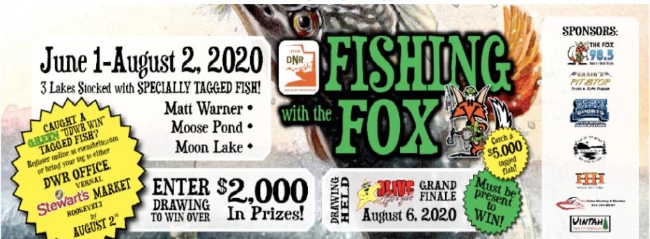 Every year, ‘Fishing With The Fox’ adds summer excitement by adding prizes as incentive for catching tagged fish in Uintah Basin water bodies and this year is no exception. The contest, hosted by the Division of Wildlife Resources and Evans Family Media’s 98.5 The Fox, is now in its 10th year. Tagged fish are registered online in order to be entered into a drawing for big prizes. The DWR tagged 600 rainbow trout that were stocked 275 into Moon Lake, 275 into Matt Warner, and 50 into Moose Pond. According to the last report, 104 tagged fish have been caught and registered; 53 from Moon Lake, 37 from Matt Warner, and 14 from Moose Pond. The prize drawing will happen August 6th at the park in front of the Uintah County Library. A new grand prize has been added this year, a fish that has been tagged worth $5,000 dollars. For more information, visit the event on Facebook and tune in to 98.5 The Fox.