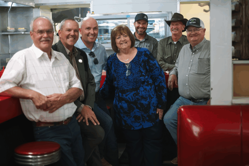 Utah’s Governor Spencer Cox made a visit to the Uintah Basin this week stopping first in Vernal. On Monday, Governor Cox enjoyed a walking tour of downtown Vernal with Mayor Doug Hammond, City Manager Quinn Bennion, and other local officials. “We welcomed Governor Cox and his economic development staff to Vernal to showcase our downtown renewal,” shares Bennion. “The team effort is recognized and applauded with small business owners locating, upgrading and expanding in the downtown district.” Governor Cox posted about the visit on his social media, sharing that three years ago, Vernal had 25 business vacancies on Main Street and today there are fewer than five. “With a strong local vision and downtown renewal plan, sales tax revenue has doubled, and Main Street is booming again,” shares Cox. While in Vernal, Governor Cox also presented the ‘Utah Treasure’ award to local Ann Stewart. “Through her businesses, volunteer work, and vision for the High Desert Center for the Arts,” shares Cox, “Ann is helping build a stronger future for the Uintah Basin.” Finally, before leaving the area on Tuesday, Governor Cox enjoyed a stop at Marion’s Variety in Roosevelt where he had lunch with Duchesne County leadership.