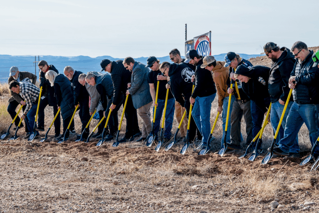 NHRA drag racing on a ¼ mile track is coming back to the state of Utah with an exciting project that broke ground on December 22nd on Blue Bench past the substation in Duchesne. Terry Henderson with Apex Racing Foundation welcomed the crowd that included local leaders, excited sponsors, and supportive racing enthusiasts to the groundbreaking. “This is something that is really powerful for the community, really powerful for the region, and really powerful for the whole state,” said Henderson. “It doesn’t matter how high or low we are elevation wise. It’s nice and flat with a beautiful view. I cannot wait to be racing here.” Following the successful groundbreaking event, Apex Racing Foundation advisory board member Shawn Taylor shared with Evans Family Media part of what makes Duchesne County a great location for this project. “Anytime you can hold a ground breaking like this and have all 3 county commissioners, incoming and outgoing mayor, and both house and senate representatives for the county, why would you not want to do it in that county?” says Taylor. “It’s safe to say this project is happening because it has broad support from our elected officials in Duchesne County.” The long term goal with the Duchesne facility is a ¼ mile drag strip, ⅜ mile asphalt oval or bigger, and a motocross track. “We are not looking to compete with Vernal,” shares Taylor. “We want to be a complimentary facility. A ¼ mile versus ⅛ mile attracts different racers. We don’t want to detract from anything that’s been built in Vernal.” Taylor also explains that Apex Racing Foundation is a community nonprofit that is working on funding and gathering support for the facility and that the master plan will take time. “Realistically, it will likely take 3 to 5 years to build the facility into something the Uintah Basin can be really proud of,” says Taylor. “In 10 years, however, we can have a really great facility that will bring in national events on a regular basis.” Still, racing will kick off this spring with the Sports Car Club of America (SCCA) bringing rally racing. To learn more about this project and the Apex Racing Foundation, visit Apex Racing Foundation on Facebook or apexracingfoundation.org.