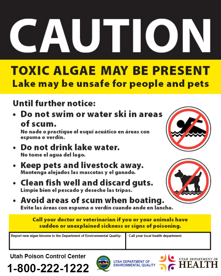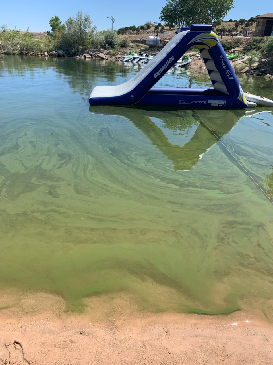 The public is being urged to use caution while recreating in Starvation Reservoir. TriCounty Health Department announced Friday that a Harmful Algal Bloom was spotted in the reservoir, concentrated at the main beach. They urged all to use caution until more information could be given after lab results were finalized. The sign posted states that the lake may be unsafe for people and pets and until further notice: do not swim or ski in areas of scum, do not drink lake water, keep pets and livestock away, clean fish well and discard guts, and avoid areas of scum when boating. If you or your animals have sudden or unexplained sickness or signs of poisoning after visiting the reservoir, call your doctor or veterinarian.
