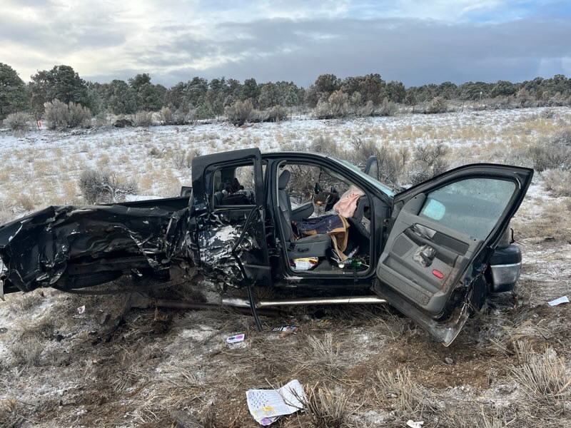 A crash on Highway 40 involving two pickup trucks resulted in serious injuries and affected traffic on Thursday morning. According to Utah Highway Patrol, the crash happened at about 8am and was near mile marker 74 on Highway 40. An eastbound white GMC pickup lost control on the slick roadway and went into the westbound lanes resulting in a quasi head-on crash. The passenger of the white pickup that lost control was ejected during the collision. They were transported by ground until they could meet a life flight helicopter, and the adult male was transported by air in serious condition. The driver was transported with moderate injuries. The black pickup’s occupants also suffered injuries but no one was transported. The accident blocked all lanes for 10 to 15 minutes, but then they opened one lane and alternated traffic until the scene was clear.