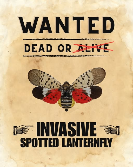 The U.S. Department of Agriculture is recruiting helpers in the fight against an invasive lanternfly infestation. “Spotted Lanternflies might look cool, but these invasive pests are a serious threat to our trees and crops,” shares the announcement. “If you spot one, squash it immediately! Every kill helps protect our environment…The spotted lanternfly is a hitchhiking pest that is native to Asia. It lays its eggs on any hard surface including grills, vehicles, trailers, firewood, outdoor furniture, bikes and toys. The pest was first detected in 2014 in Pennsylvania. It likely arrived in the United States on goods shipped from overseas.” Juvenile spotted lanternflies are black with white spots and turn red as they develop. Adults are roughly 1-inch long and 1/2-inch wide and have a yellow, black-barred abdomen. With large, visually striking wings, adult spotted lanternflies can be easier to spot than other pests. This species poses a danger to the fruit and forest industries.