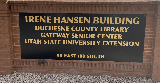 A surprise presented to outgoing Duchesne County Commissioner Irene Hansen at her retirement celebration last week left her totally speechless as those gathered showed their support. The old county building in Duchesne City that has been remodeled to house the Gateway Senior Center, Duchesne County Library, and USU Extension has a new sign in place out front and it bears a new name: the Irene Hansen Building. Hansen’s fellow Commissioners, Greg Miles and Tracy Killian, pursued the idea to highlight the many years of service Hansen has given Duchesne County through years of working for the Chamber of Commerce, Economic Development Department, Travel and Tourism, and finally in 6 years as a County Commissioner. “Words cannot describe my sincere appreciation,” shares Ms. Hansen. “As a public servant, I have always loved all of the County residents, businesses, organizations and leadership. It is an absolute privilege to have served them. I don’t think I can ever thank everyone enough to consider me worthy of this honor. I will strive to continue to make a difference and make our communities stronger and more resilient.” The presentation of the building’s new name was done on Tuesday as part of the building’s ribbon cutting ceremony. Plans to move into the building begin next month.