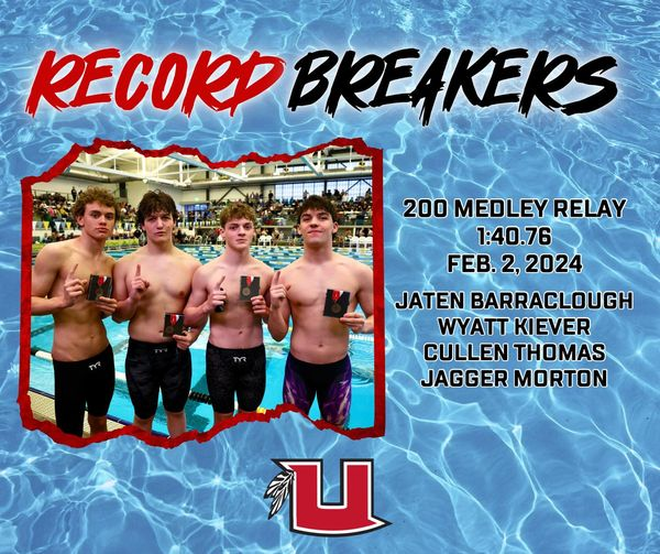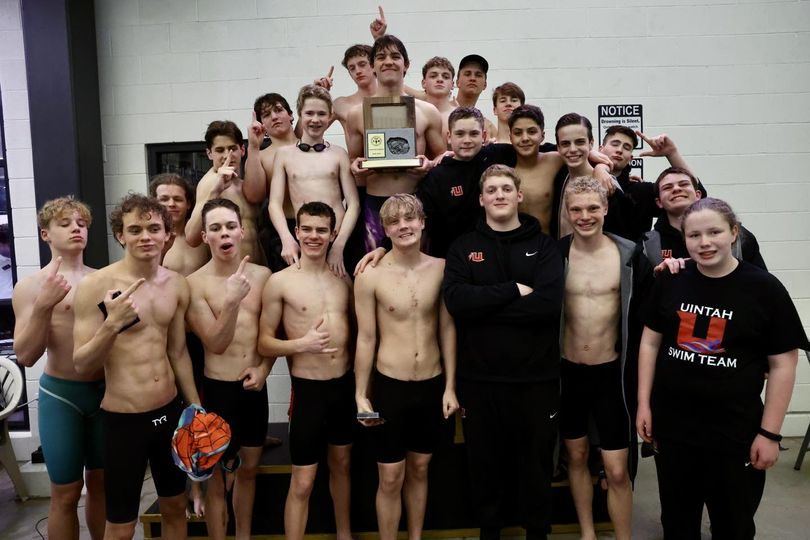 It was a successful weekend for Uintah Athletics at Region and Divisional competitions. The Uintah Boys Swim Team became the Region 8 Champions with several school records set. Jaten Barraclough, Wyatt Kiever, Cullen Thomas and Jagger Morton won the 200 Medley Relay and broke their own school record with a time of 1:40.76. Jagger Morton won the 200 Individual Medley and broke his own school record with a time of 2:01.08. He also won the 100 Backstroke and set a new school record with a time of 53.91. The previous school record was set in 2019 by Cason Talbot with a time of 54.26. Jagger also has school records in the 100 Butterfly and 500 Freestyle bringing his school record count to 5. Uintah Swim Head Coach Jared Bigler said Region was a day full of memories. “Our team has worked hard all season for this,” shared Coach Bigler. “The meet was full of impressive personal records and teammates cheering each other on. When the boys were announced as region champs, they promptly pushed all three of us coaches into the pool.” It was also a successful weekend for the Uintah Boys Wrestling team as they dominated and won the 4A Divisional B meet. Payson won the 4A Divisional A meet so it looks like it will be another Uintah/Payson showdown at State on February 16th and 17th. The main difference this year is that they are vying for the 4A championship rather than the 5A.