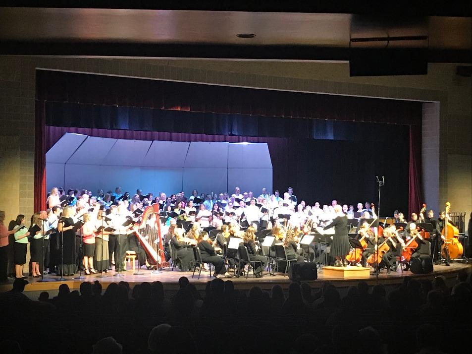 Roosevelt was host to a marvelous Easter kick-off experience. The Uintah Basin Interfaith Community productions of  ‘Lamb of God’ were held at the Union High School auditorium on Sunday. This sacred work features choir, orchestra, and soloists performing music about the death and resurrection of the Savior Jesus Christ. The special work brought talent from all over the Basin to help share its music and message. The choir had 121 members, including 13 soloists, and the orchestra had 55 musicians. The talent, dedication, passion, and faith filled the auditorium for both of their performances. Dr. Jane R. Fjeldsted was the guest conductor and the only person involved that was from outside the area. She conducts multiple choirs, is a singer and conductor for two production companies, has taught choirs for at-risk students and high schools, and has served on the boards of the Utah Music Educators Association and American Choral Directors Association of Utah. After the show received a standing ovation, Dr. Fjeldsted paid the talent of Uintah Basin, both the performers and organizers,  a huge honor in what she shared with the crowd. “Can I just say that it’s absolutely remarkable that you have this kind of talent here,” shared Dr. Fjeldsted. “This is incredible and anything that they do you should just fill this house. They are fabulous.”