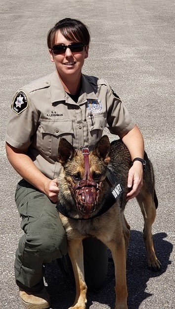 There are some things a person just doesn’t forget and a special demonstration to the 5th grade class of Lapoint Elementary may fit in that category. Principal Don Heath stood in as the volunteer for K-9 Riddick to demonstrate his apprehension skills. Heath bravely put on the bite sleeve so Riddick could show off one of the ways he helps protect the public.
