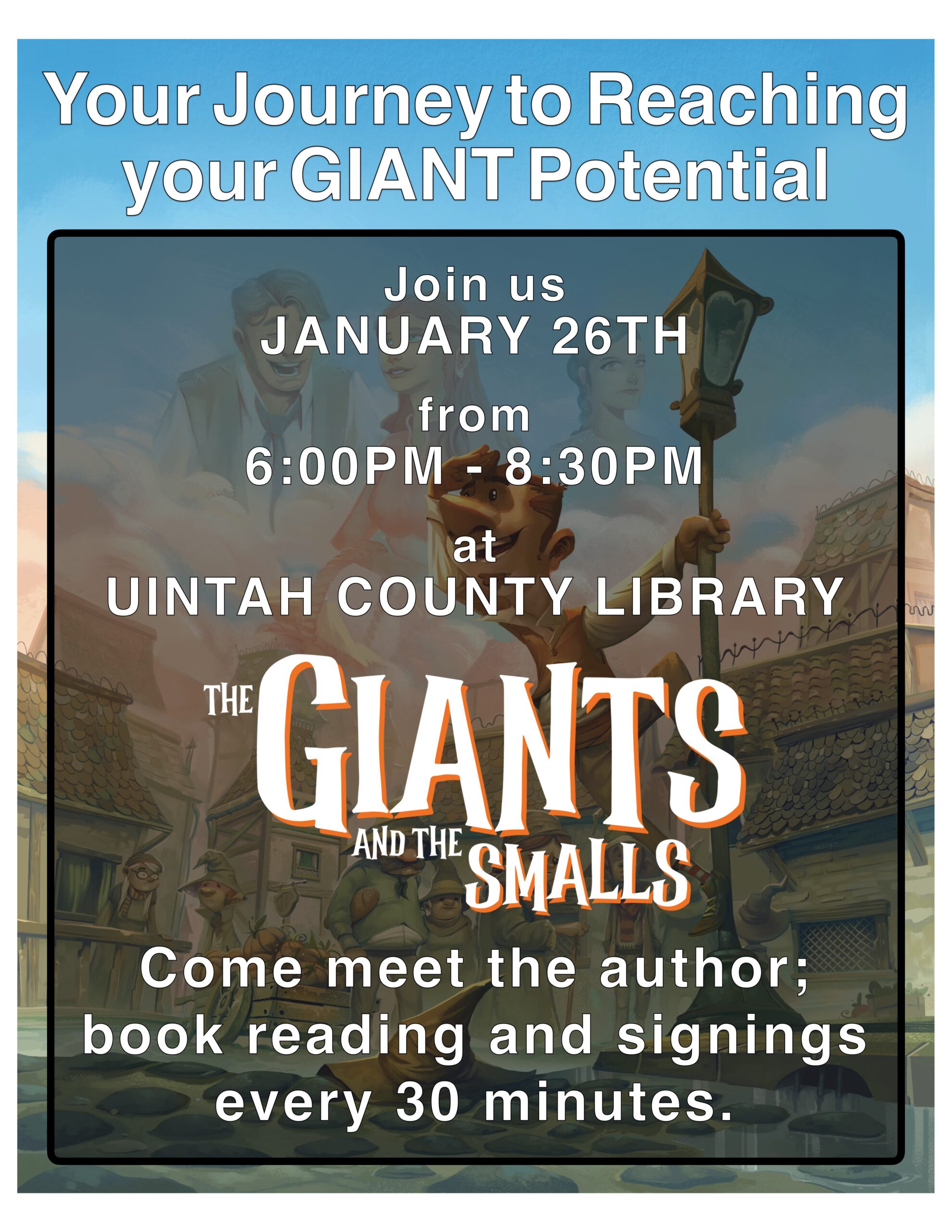 Whether you are 1, 100, or somewhere in between, you are invited to join the League of Giants! An author whose mission is to share Growth Mindset principles is making stops all throughout the Vernal area today and tomorrow with readings and discussion of his book ‘The Giants and the Smalls’ at the Uintah County Library this evening. Nicholas Townsend Smith has the goal of helping 100 million people realize their Giant potential and uses his book to encourage and teach individuals and families as well as groups of adults in a variety of settings. Today he will be at the Ashley Valley Education Center from 9 to 11am followed by a visit to the Uintah County Jail and finally this evening at the Uintah County Library from 6 to 8:30pm. His mission will continue on Friday starting at Springhill Suites from 7 to 9am and then the Innovation Hub from 11am to 1pm. The community is invited to either event on Friday but there is a cost of $25 dollars which includes a copy of the book and food. There is no cost associated with the Thursday events. Come learn about your Giant potential at the library tonight. Learn more about the League of Giants at www.GiantsAndSmalls.com.