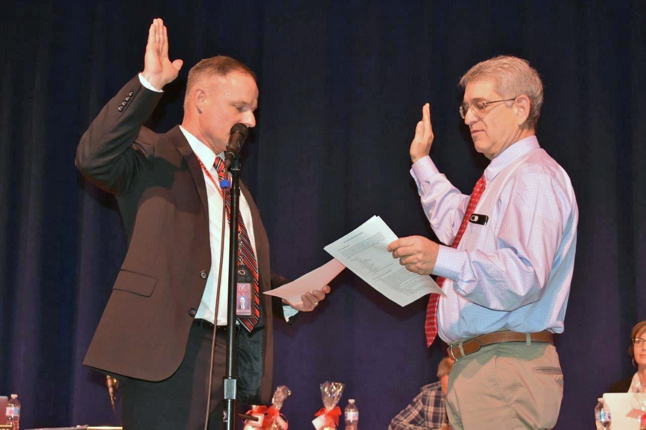 Uintah School District officially has a new Superintendent. During Wednesday’s regularly scheduled board meeting, Dr. Rick Woodford was sworn-in as Superintendent by 8th District Court Judge Clark McClellan. After taking his oath and signing his contract, Woodford thanked the school board for trusting him with “a stewardship over the education of the children in [the] community.” Woodford has already met with many of the District’s directors. “I’m excited to meet the principals and the rest of the staff,” he said, “but I can see that there’s some remarkable work that’s already been done here over many years. I want the board to know that I will honor that work that’s been done. It’s very important to me that people know and recognize that my objective is not to come in here and change everything for the sake of change. It will be to evaluate and try to make things better for the kids.” Dr. Woodford has a Bachelor’s and Master’s in Special Education from USU and earned his Doctorate of Education from the University of Wyoming. He taught special education at Logan High School from 1993 to 2000 and then served as the special education director for Lincoln County School District 2 in Afton, Wyoming from 2000 to 2012. From 2012 to 2014 he worked as the principal of Star Valley High School before becoming the Superintendent for Big Horn County School District where he was employed when he accepted the position in Uintah School District. Woodford and his wife Jen are the parents of seven children, three of which are still at home and school aged. They also have two grandchildren.
