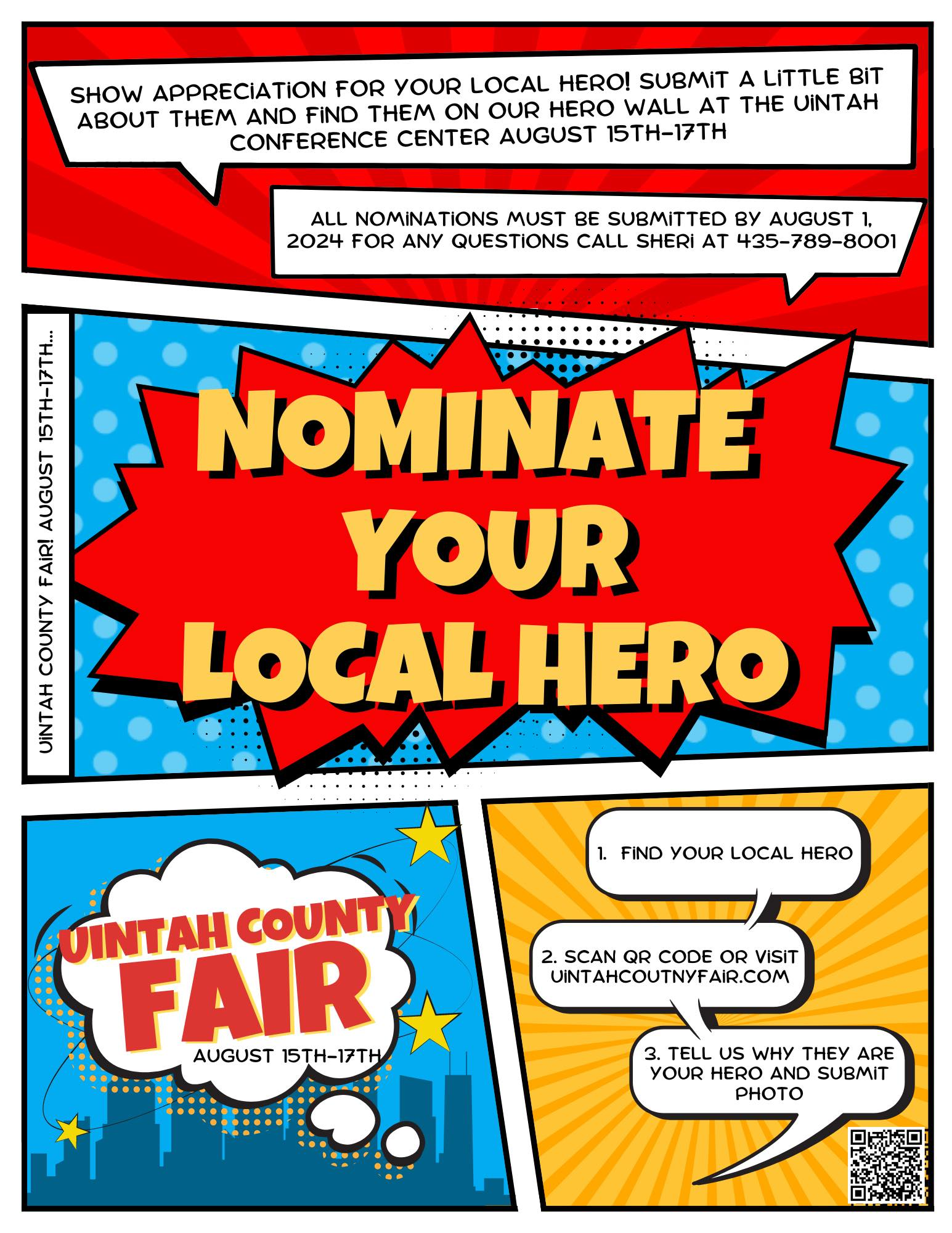 Summer may be moving along too fast but at least there are the county fairs to look forward to before the season ends. As that approaches, organizers of the Uintah County Fair are asking residents to submit names of local heroes to be honored during the fair. Submit a photo and tell us why they are your hero. These will be put on display on the hero wall during the fair. The theme for the 2024 Uintah County Fair is ‘Find Your Hero’ and it will run August 14th through the 17th. Stay up to date on the Uintah County Fair Facebook page and at www.uintahcountyfair.com.