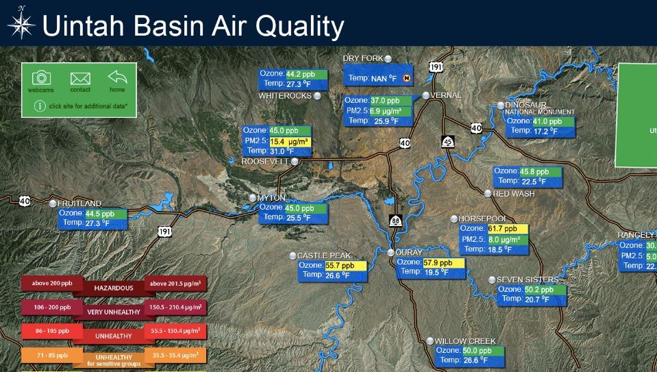 The USU Uintah Basin Bingham Research Center has issued an ozone alert for this Friday. Ozone in the Uintah Basin is likely to exceed the National Ambient Air Quality Standard of 70 parts per billion on January 10th. “The Uintah Basin received significant snowfall during the Christmas Holiday week,” shares Research Center Director Dr. Seth Lyman. “ Since then, a persistent inversion layer has settled in and been fairly consistent, and the majority of the Basin is still covered with snow. Ozone has gradually built up, although quite slowly, and as of now has approximated 60 ppb (8-hr average) at several monitoring sites.” He continues to explain that overcast conditions may hinder ozone build-up but on Friday sunny weather is forecasted making it likely that ozone will then exceed the National standard, though by a small margin. Its expected that over the weekend and into next week the ozone will decrease. Those that are interested in more information can visit binghamresearch.usu.edu.