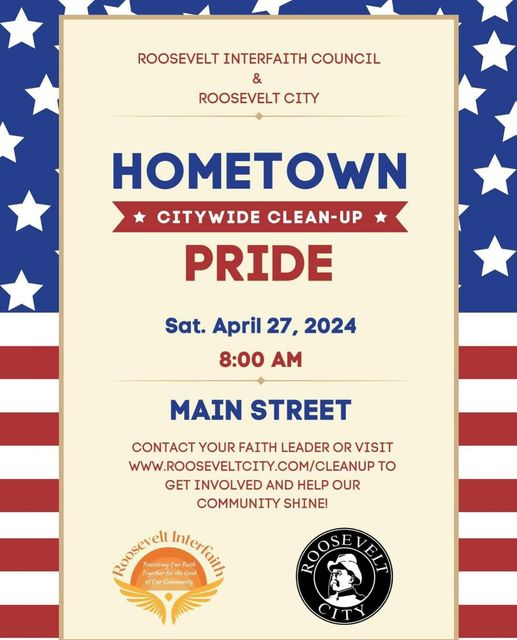 The Roosevelt City Interfaith Council has joined forces with Roosevelt City to promote some spring cleaning. The Hometown Pride Citywide Clean-Up event is taking place on April 27th on Main Street.