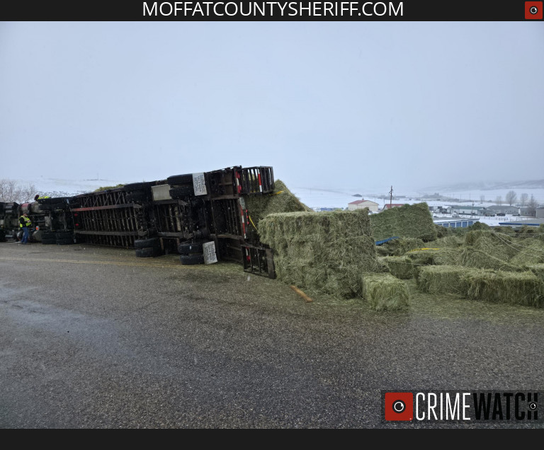 A large load of hay ended up on the roadway after the semi carrying it crashed on Thursday in Moffat County. The Moffat County Sheriff’s Office shares that the accident occurred at 5pm on February 20th due to a rollover crash on the bypass of Moffat County Road 183 and Moffat County Road 7. Traffic was impacted in the area with the roadway reduced to one lane affecting travel on both county roads. The Colorado State Patrol is investigating the crash. No injuries were reported. Colorado State Patrol has had a tragically busy week with 7 fatal crashes with eight deaths and additional serious injuries across Colorado from last weekend alone due to the winter driving conditions.