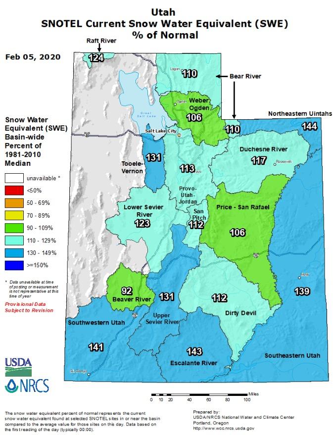 A new SNOTEL report for Utah was released on Wednesday. Current snow water equivalent for the Duchesne River region is 117 percent the average for this time of year and the snow water equivalent for the Northeastern Uintahs region is 144 percent the average for this time of year. The Utah Department of Natural Resources shares that the SNOTEL report shows the current snow water equivalent is still well above normal with another storm fast approaching.