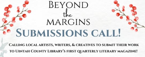 Calling all local artists, writers, and creatives! The Uintah County Library is inviting you to submit your work for consideration in the library’s 1st quarterly literary magazine Beyond the Margins. A few examples of work being accepted include: poetry, fiction and nonfiction short stories with a 3,000 word maximum, a short one-act play, photographs, art pieces, and more. The submission window closes on January 31st and all ages are welcome to enter submissions. The first volume of the literary magazine will come out February 2025. For more information on entering submissions, visit the Uintah County Library Facebook page and click the link or scan the QR code on the Submissions Call post.
