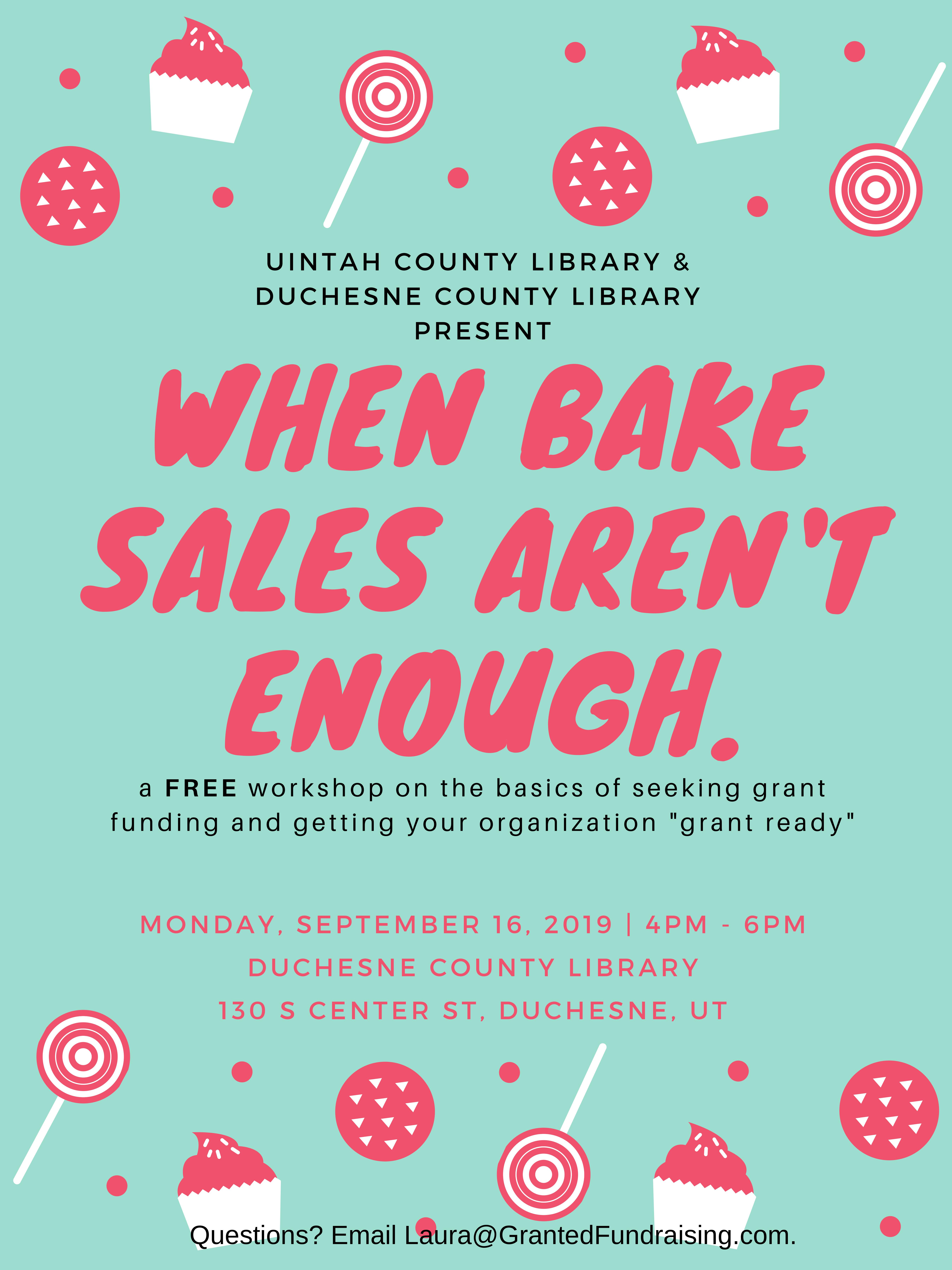 Grants can be a great help in securing funds for our companies and causes. However there are tricks and techniques to know and understand to secure such help. A study from The Foundation Center shows that it is worth pursuing grants. In their study sampling, 35 percent of the grantmakers funded 50 percent or more of the grant requests that had been submitted. Success is part preparation, part following the submission rules and one hundred percent getting your grant requests sent out. A workshop scheduled for today and which is entitled ‘When Bake Sales Aren’t Enough’ is free and will cover the basics of seeking grant funding, as well as how to get your organization “grant ready”. To participate meet at the Duchesne County Library today with the workshop going from 4pm to 6pm.