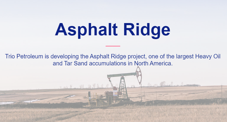 Trio Petroleum issued a press release last week with an update on the Asphalt Ridge Project located in Uintah County. The successful drilling and completion of the first two exploratory wells encountered substantial oil-bearing pay zones in the Rimrock and Asphalt Ridge tar-sands in June. A downhole-heater was installed on one of the wells and in September, they announced their first oil production with the oil production continuing to-date. Last week’s announcement shared that the other well is scheduled to receive a new downhole heater in early December and should commence oil production shortly thereafter. Engineering for a further six wells has been completed and permits are expected shortly. Trio Petroleum Corp. is headquartered in Bakersfield, California, with operations in California and Uintah County, Utah.