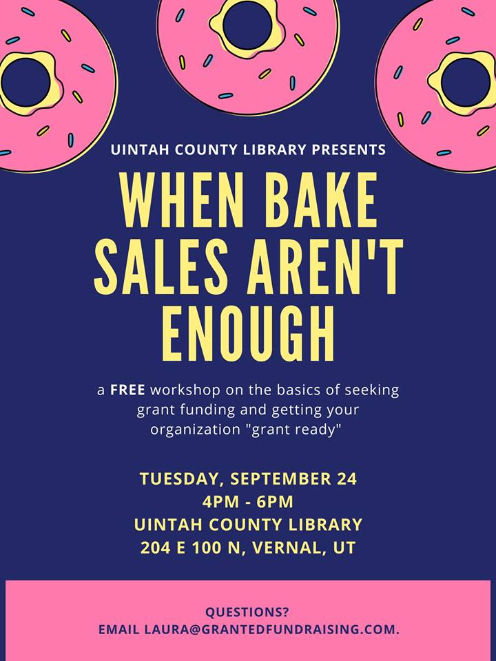 The local library systems are holding special grant writing workshops throughout the many branches and now it is Vernal’s turn. Come learn how securing grants can help local companies and causes. The workshop will teach tricks and techniques to enhance the probability of securing grant funds. A study from The Foundation Center shows that it is worth pursuing grants. In their study sampling, 35 percent of the grantmakers funded 50 percent or more of the grant requests that had been submitted. The local workshop scheduled for today and which is entitled ‘When Bake Sales Aren’t Enough’ is free and will cover the basics of seeking grant funding, as well as how to get your organization “grant ready”. To participate, meet at the Uintah County Library today with the workshop going from 4pm to 6pm.