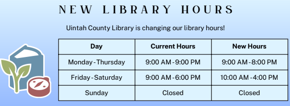 Effective August 4th, the Uintah County Library will have new operating hours. The change was announced during Tuesday’s Uintah County Commission meeting, explaining that the reduction in hours is due to changes in federal funding but still aims to maintain a high-quality library experience. “While adapting to budget requirements, the County and Library leadership have prioritized maintaining all current programming, protecting core library services, and preserving all staff positions,” shares the Uintah County announcement. “The new schedule was developed using data on peak library usage to ensure the most efficient and effective access for the community…The Uintah County Library will continue to focus on providing exceptional service, fostering lifelong learning, and supporting the educational needs of residents of Uintah County.” The library now closes one hour earlier at 8pm on Monday through Thursday and two hours earlier at 4pm on Friday and Saturday.