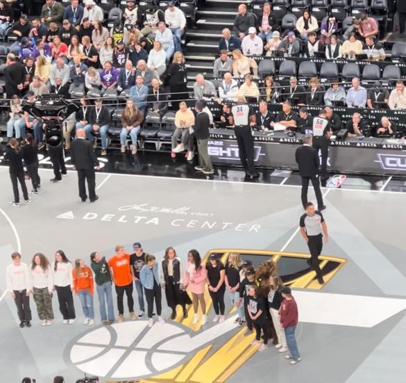 The Uintah High School Hope Squad was one of just a few groups in the state recognized this week at a Utah Jazz game as part of the 2024 Show Up Service High School Challenge. First Lady Abby Cox and Utah Jazz owner Ashley Smith hosted them at the game with dinner on the top floor of the Delta Center to celebrate their service and some of the students were invited onto the floor as well for the group to be recognized. Uintah School District shares that for their project, the Uintah High Hope Squad helped with the Vernal “Out of Darkness” suicide prevention walk on September 21st. Hope Squad members arrived before the walk to set up signs, set out suicide prevention information, and help participants as they arrived. Hope Squad was also in charge of passing out honor beads – beads of different colors that represent groups of people who have lost loved ones to suicide or who have struggled with suicidal thoughts themselves. The Uintah Hope Squad was one of only four clubs or teams in the state out of more than 40 that submitted projects to be selected for the honor.