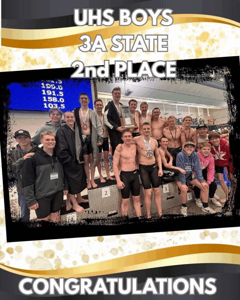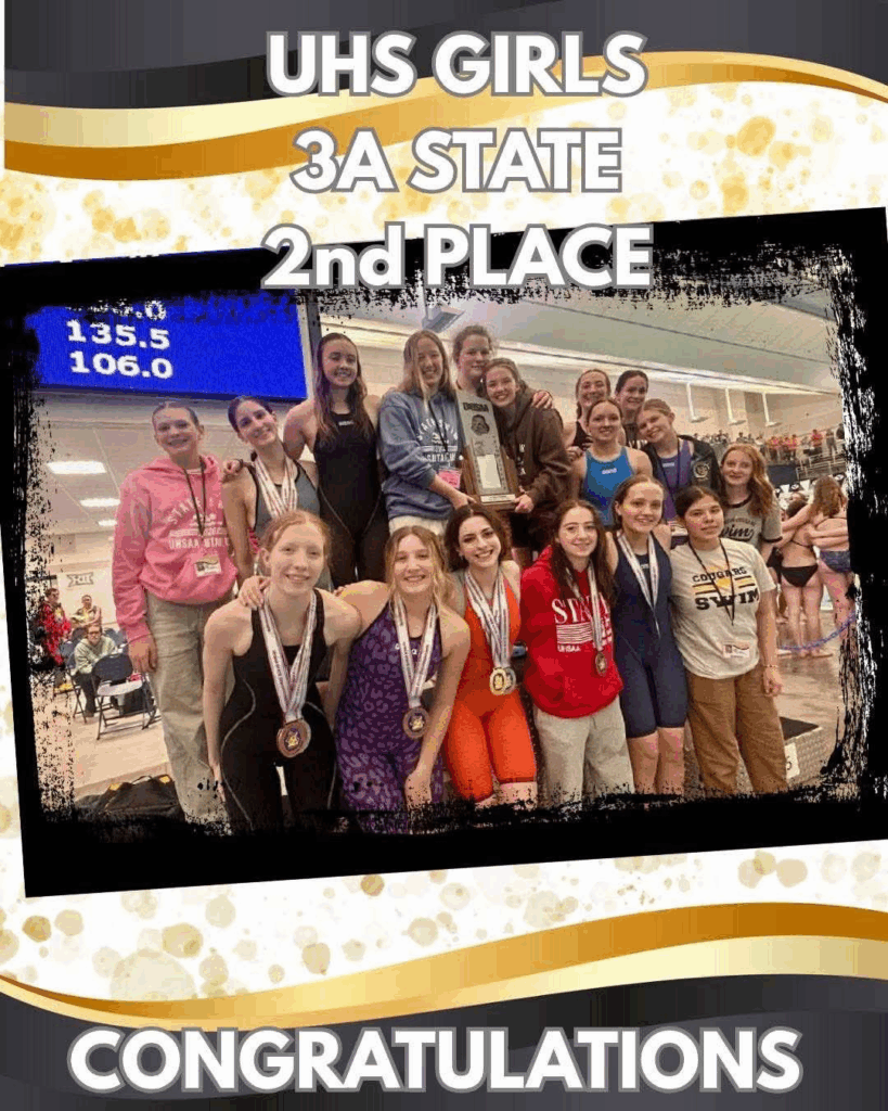 It was an amazing season of competition for the Union High Swim Team. The Union Girls took 2nd place at 3A State with a team score of 248.5. Emery Lachance is the 200 Freestyle state champ. The Union Boys took 2nd place in the Boys 3A State tournament with 317 points. Ryker Getchell is the 100 Freestyle State Champ. Both the girls team and boys team had other podium finishers as well. Something that added to the excitement for the Union swimmers at state competition was the fact that 7 school records were broken, including Emery Lachance in the 200 Freestyle and 100 Freestyle, Cambree Guymon in the 100 Backstroke, Ashton Bennett in the 500 Freestyle, and the Girls 200 Medley Relay, Boys 200 Medley Relay, and Boys 400 Freestyle Relay. Congratulations Union Swim on your success at State!