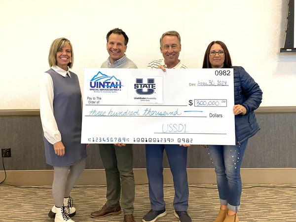 Director Cheryl Meier presented Utah State University and UBTech with checks for