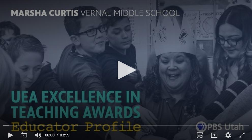 One of our local teachers has been selected as a recipient of the 2020 UEA Excellence in Teaching Award. Marsha Curtis teaches sixth and seventh grade social studies at the Vernal Middle School. In a video highlighting her nomination on PBS Utah, it is clear that her learning experience starts with caring about the students first. Her desire to have students engage is splashed with warmth across her classroom, with pictures and items that get students to look around. Caren Burns, a fellow UEA Educator who nominated Marsha, states, “Marsha is the teacher that every kid needs and every kid deserves. She is like a ray of sunshine. She is so warm and welcoming and kind. And in the forefront of her mind is always ways that she can make her students feel loved and appreciated.” Marsha likes to have students change their perspective to help make history real. Her ability to care first allows the students to feel safe and thus engage in the fun learning experiences. “It’s like a party with a learning experience attached to it,” Caren adds. Marsha sums up why she is deserving of her nomination with her personal philosophy about the students when she says “they (the students) need someone that cares! Someone that’s not worried about how well they do on their work but cares that they’re there everyday and that they know that they matter.”