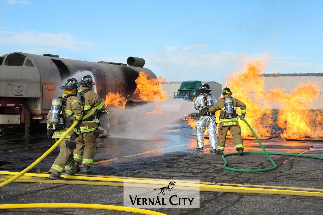 Firefighting crews from around the state received hands-on training during the annual Aircraft Rescue and Firefighting Training hosted at the Vernal Regional Airport. Vernal City issued a press release, sharing that crews from Moab and Cedar City joined the Uintah Fire District for the interactive training that simulated aircraft fire scenarios. “One of the things I love is it’s as realistic as can be without people injured and without massive amounts of property damage,” shares 139 Fire Training Instructor Dave Brinton. “There’s no substitute for hands-on time. This gives us the opportunity to make mistakes without consequences and learn from them, so tomorrow we’re better than we were today.” Vernal Regional Airport Director Ken Campbell considers the chance to host an important opportunity. “We are one of a few commercial airports in Utah,” explains Campbell. “We get 12 flights a week, and if anything bad happens, we have to be here as a crew to take care of it. Every four years we get the opportunity to host this training, and it’s well worth the effort for us.”