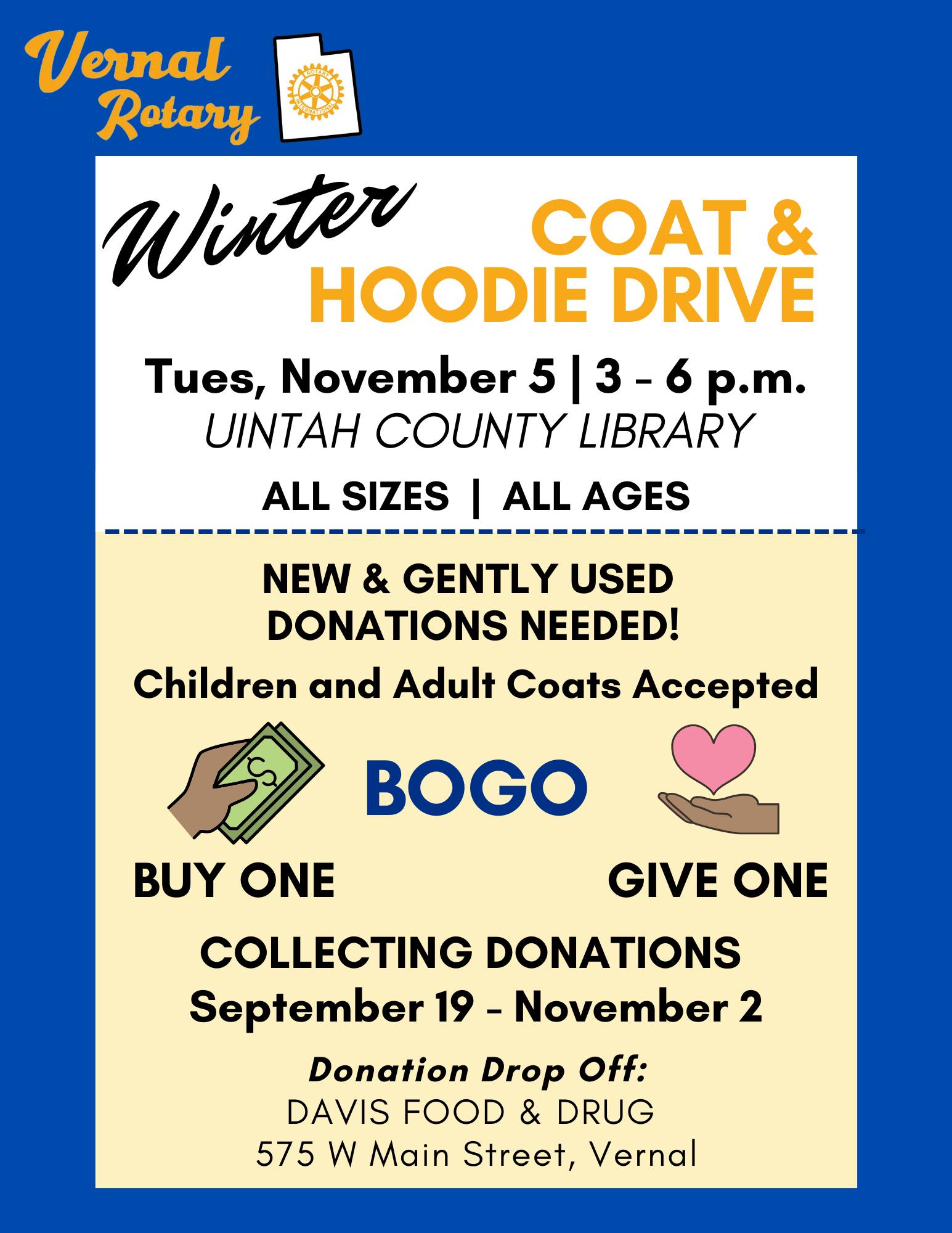 two and donate one to help support this year’s coat and hoodie drive. The Vernal Rotary