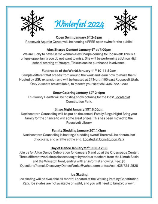 series of activities and events in Roosevelt aimed at beating the winter blues. All are
