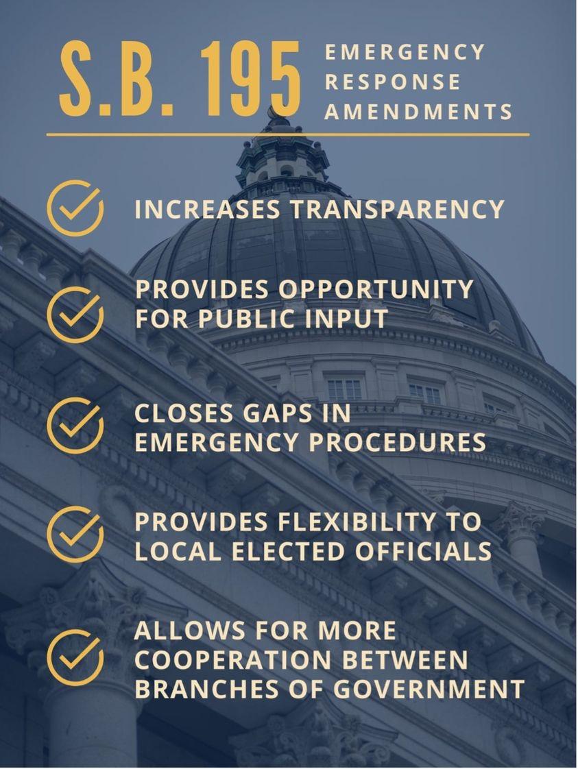 Based on experience during the COVID-19 pandemic, a bill making its way through the Utah Legislature aims to clarify the balance of powers during public emergencies. Senator Ron Winterton explained on social media that SB 195 ‘Emergency Response Amendments’ is about checks on executive powers during long-term emergencies without hindering rapid emergency response. “This bill is a direct result of the concerns we heard from Utahns across the state and does not disrupt the executive branch’s, Utah Department of Health’s or local health agencies’ ability to respond to day-to-day emergencies, such as natural disasters,” shared Winterton. “S.B. 195 creates checks and balances between the different branches of government as well as between state and local governments, including health departments during long-term emergencies. It also increases transparency and allows for public input.”