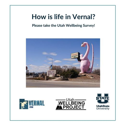 Vernal is one of 46 communities invited to participate in the Utah Wellbeing Project and both English and Spanish speakers are encouraged to participate. The project is a public wellbeing survey being performed by Utah State University that can be done online in about 10 minutes. “The goal of this survey is to better understand the life conditions of people in Utah cities and towns and how different aspects of wellbeing vary from person to person and place to place,” shares Dr. Courtney Flint with USU. “We would like to hear from adults (age 18 or over) who are full-time or part-time residents of Vernal.” The survey can be linked to by visiting http://tinyurl.com/Vernal2024. All are encouraged to share the link with the Vernal community members they know.